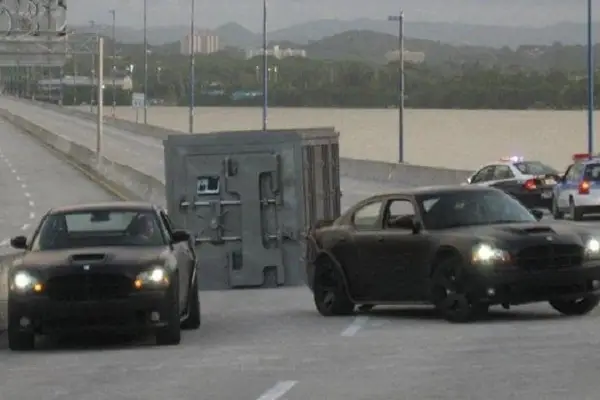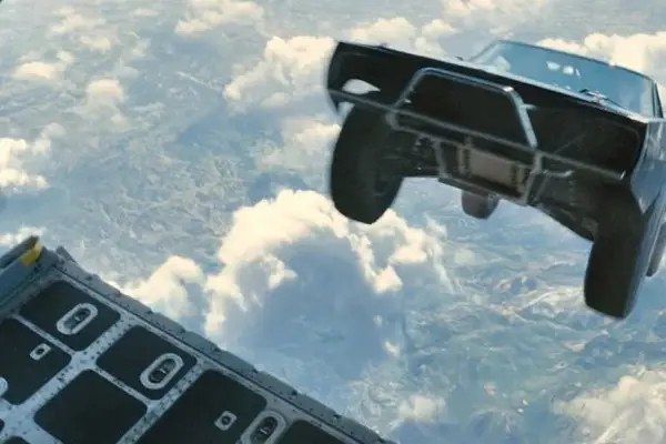 L'une des plus grandes pièces du film implique que l'équipage sort d'un avion de fret dans les airs, puis il y a une route montagneuse reculée pour kidnapper un convoi. Il semblait ridicule que les cinéastes l'ont fait Laissez de nombreuses voitures tomber d'un avion pour filmer la scène. Les parachutistes ont dû suivre les voitures pour obtenir le coup. Une voiture a été détruite dans l'expérience parce que son parachute n'était pas ouvert.