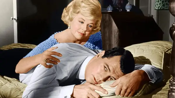 Cushion Talk (1959): La designer d'intérieur Doris Day méprise les femmes Playboy -Rock Hudson, avec qui elle partage une ligne de fête, mais comme elle n'a aucune idée de ce à quoi elle ressemble, elle tombe amoureuse de lui en faisant semblant d'être timide, inconfortable et a besoin d'une formation romantique.