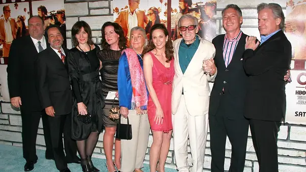 L'acteur James Gandolfini, président de HBO Films, Len Amato, Michele Loud, Delilah Loud, Pat Loud, l'actrice Diane Lane, Bill Loud, Kevin Loud et Grant Loud visite la première de Cinema Verite de HBO Films en 2011.