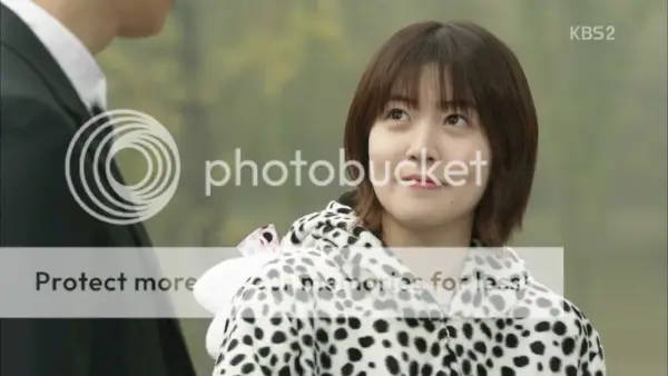 Nae-il le suit comme un chiot, rendu complètement littéral avec son costume de chiot, et Yoo-jin la repousse en se plaignant qu'il est allergique à la fourrure… et aussi à elle. Il semble se rendre compte tardivement que cela la blesse, alors il s'arrête avec un soupir pour attendre qu'elle le rattrape.