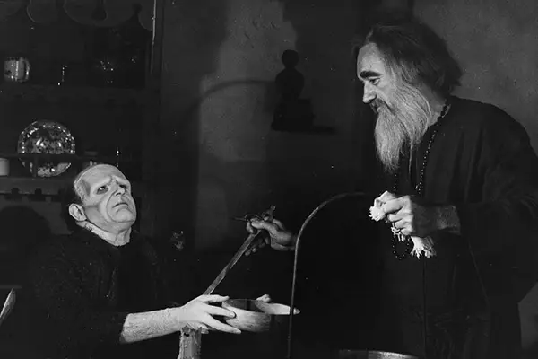 Hackman avait un camée court mais inoubliable dans la parodie terroriste de Mel Brooks comme un prêtre aveugle et solitaire, qui a essayé de se faire des amis avec le monstre de Frankenstein (Peter Boyle), mais a renversé la soupe chaude sur ses genoux et a changé le doigt.
