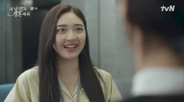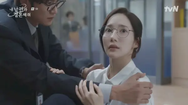 La prochaine chose que Ji-won sait, c'est qu'elle est de retour dans son bureau, face à son mari infidèle. Sa trahison encore fraîche dans son esprit, elle attaque instinctivement Min-hwan avec fureur, jusqu'à ce que le directeur général YOO JI-HYUK ( Où In-woo dans des lunettes adorablement ringardes) intervient. Il sauve Ji-won deux fois de plus, repoussant une cruche qui tombe et l'empêchant de trébucher dans les escaliers, et il récupère même ses chaussures perdues comme son propre prince charmant.