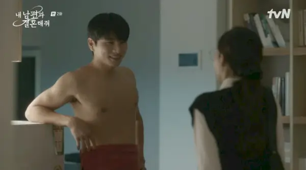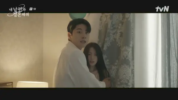 Min-hwan est rentré à la maison plus tôt que prévu, car Ji-won avait auparavant agi de manière mignonne et timide afin de dissiper ses soupçons infondés selon lesquels elle et Ji-hyuk auraient une liaison naissante. (La projection est forte avec celui-ci, hein ?) Sous l'impression que Ji-won est d'humeur à vivre des moments sexy, Min-hwan jette sa serviette avec un geste dramatique, souriant d'impatience. Acculé par le impatient Min-hwan, Ji-won hurle d'horreur.