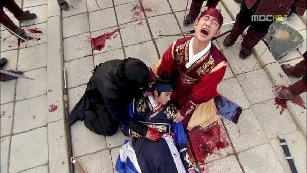 Le ministre Yoon est littéralement le dernier homme debout, et il voit tous ses hommes morts autour de lui. C'est maintenant au tour de Hwon de lever son arme et il envoie une flèche voler dans sa jambe. Ce n’est pas une blessure mortelle, et le ministre Yoon accuse quand même le roi. Yang-myung l'abat, lui portant le coup mortel, et les frères sourient de soulagement que tout soit fait.
