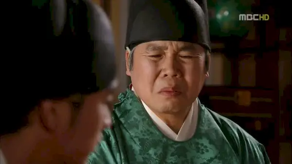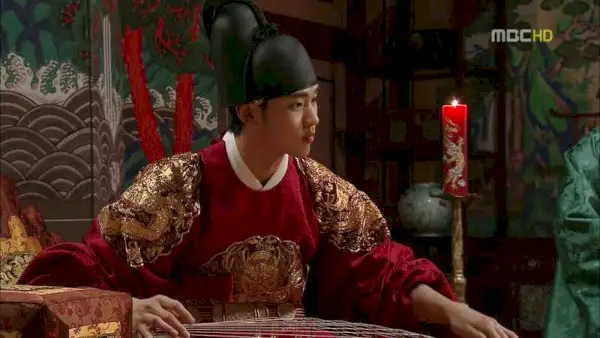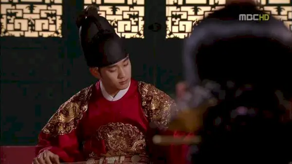 De manière hilarante, le roi pratique régulièrement ses talents musicaux dans ses moments libres, rencontrant Hong Kyu-tae (maintenant ministre) perplexe tout en travaillant son air-gayageum. Cela me fait craquer.