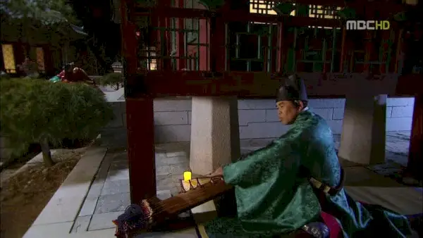 Frustré, il repousse le gayageum et lui reproche d'être suceur. Hyung-sun propose de vérifier la validité de l'instrument, puis démontre sa propre maîtrise étonnante de celui-ci. Il détermine que le problème ne vient pas du gayageum, soulignant qu’il a appris en regardant les leçons du roi. Haha. Bien instruit, Hwon fait la moue, fait face au mur.