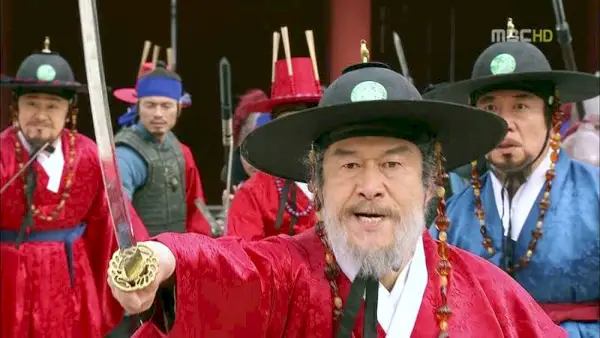 Alors maintenant, Yang-myung lève son épée et pousse un cri de guerre… puis se retourne et abat l'un des ministres rebelles à la place. Cela donne à Hwon la chance de courir en toute sécurité aux côtés de son frère.