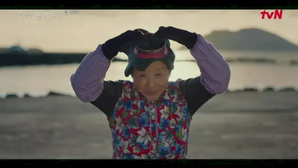 Bien que l'état d'Ok-dong se détériore, elle souhaite rentrer chez elle, alors Dong-suk réserve des billets pour le prochain ferry. Avec quelques heures à perdre, il lui demande si elle veut aller ailleurs et Ok-dong mentionne la ville où elle a rencontré son mari. Malgré ses grognements, il l'y emmène et Ok-dong regarde l'ancien restaurant où elle travaillait lorsqu'elle était jeune adolescente.