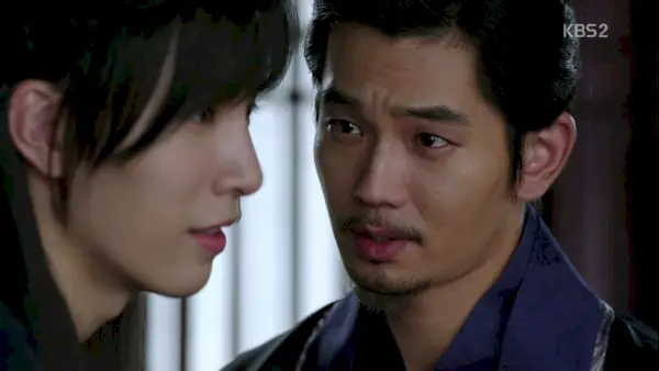 Mu-young se tourne vers lui : Tu es le roi de Goguryeo. Vous devez prendre la bonne décision. Ses yeux se remplissent de larmes retenues, tout comme ceux de Jang.