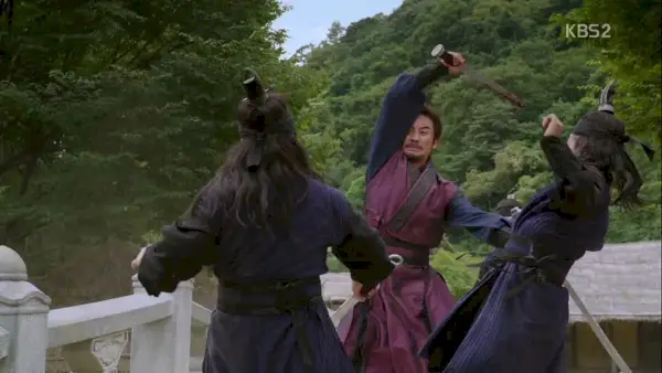 Jang sait que quelque chose se passe quand il ne voit pas Choong avec la légion d'agents de Nam-saeng, et c'est parce que Choong se fraye actuellement un chemin à travers des hordes d'agents. autre des agents fidèles à Nam-saeng pour des raisons que nous, simples mortels, ne pouvions pas comprendre. (Remarque : n'y avait-il pas de vrais soldats à Goguryeo ? Ou des citoyens ?)