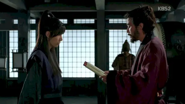 Après avoir parlé à Mo-seol de ses projets fous de devenir roi, Nam-saeng se rend chez le roi actuel pour lui signaler que tout se passe comme prévu. Je suis sûr qu’il n’a dit à Jang que la moitié du plan réel.