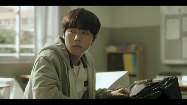 Au moment où Shi-eun revient, il est engourdi et étourdi, après avoir réalisé le patch sur son cou. L'enlevant, il commence à se gifler à plusieurs reprises, sans s'arrêter même lorsque le professeur crie d'inquiétude et que toute la classe le regarde sous le choc. C’est une scène déchirante – on dirait que Shi-eun le fait pour se réveiller des effets de la drogue, mais on a aussi l’impression qu’il se punit pour avoir raté l’examen.